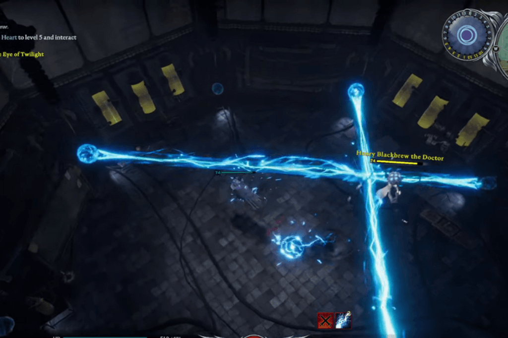 For this fight with Henry Blackbrew the Doctor, the best dash spell you can use is Veil of Chaos. It’s really helpful when Henry tries to push you into the electric fence around the room.