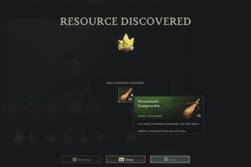 Homemade Gunpowder can be made with the help of the crafting feature. This will take you approximately 45 seconds to create, and once it is created, you will receive 10 units of Homemade Gunpowder. For this, you will require 10 units of Sulfur and 20 units of Ash.