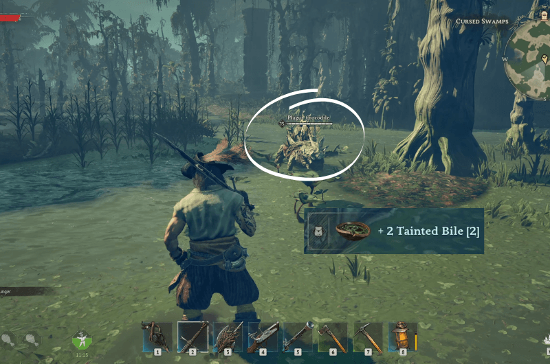 In the Cursed Swamps biome, you need to dive a bit deep into the swamps to find the Plague Crocodiles. They mostly spawn near points of interest – standing guard at places like Sacrificial Altar, Tainted Ruins and Frescoed Ruins – which you come across during the main questline progression. They can also be found on the final boss island where you face the biome’s local threat, High Priestess.