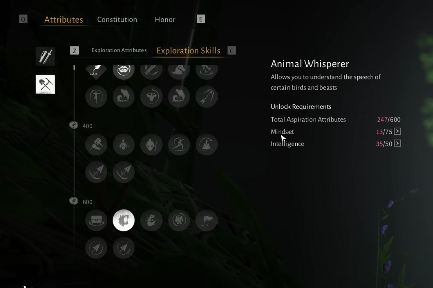 Once you have reached these stats and unlocked the Animal Whisperer skill, you will be able to communicate with animals in the game.