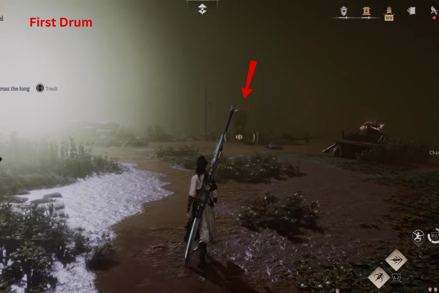 Start from the north side of the area and follow the path shown in the gameplay. You can also track the drums by following the sound icons that pop up, which point you toward the next drum. Each drum is guarded by enemies. Just be careful, these enemies revive for a short time even after you beat them.