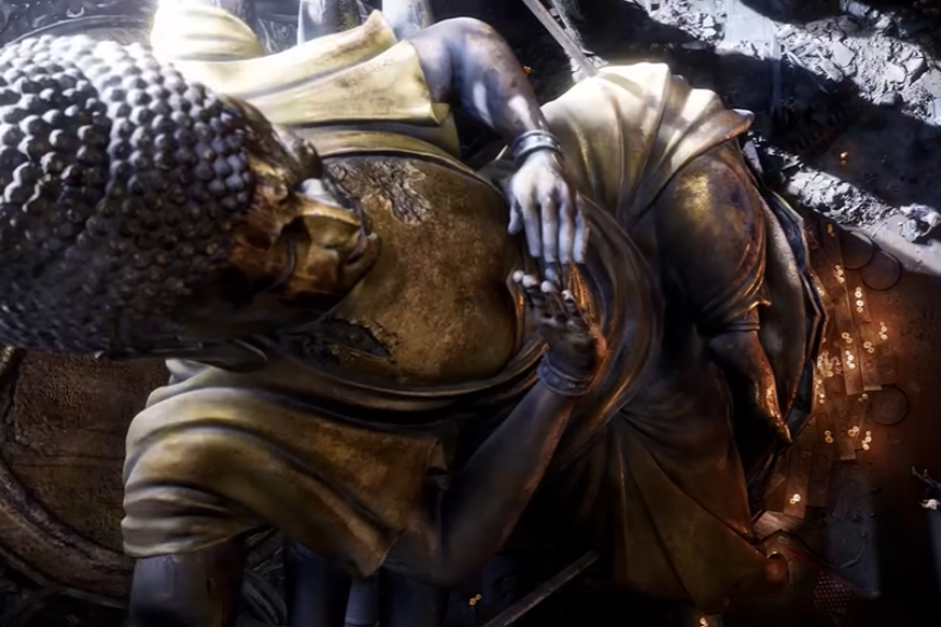 The Where a Thousand Buddhas Wept quest will start by having a conversation with the Wayfarer of Sundara Lands. Then talk to the monk who is murmuring just next to the Wayfarer. The monk will request you to help him in performing some rituals: lighting the incense stick, offering it, and throwing the ashes off the cliff. After that, follow him as he joins a quiet procession walking through a narrow corridor toward the temple.
