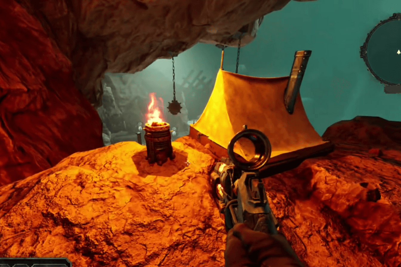 The best part is that the Brine Revolver is a free, permanent unlock, making it one of the simplest weapons to obtain in Abyssus. Completing the brief tutorial at the beginning of the game is all that is required. You will then be directed back to the main lobby. Simply exit the tent from your spawn position and go left to find a workbench. The Brine Revolver sits atop a barrel just next to it. Just pick it up, that’s all. The gun will always be unlocked and prepared for use in all of your later runs after that.