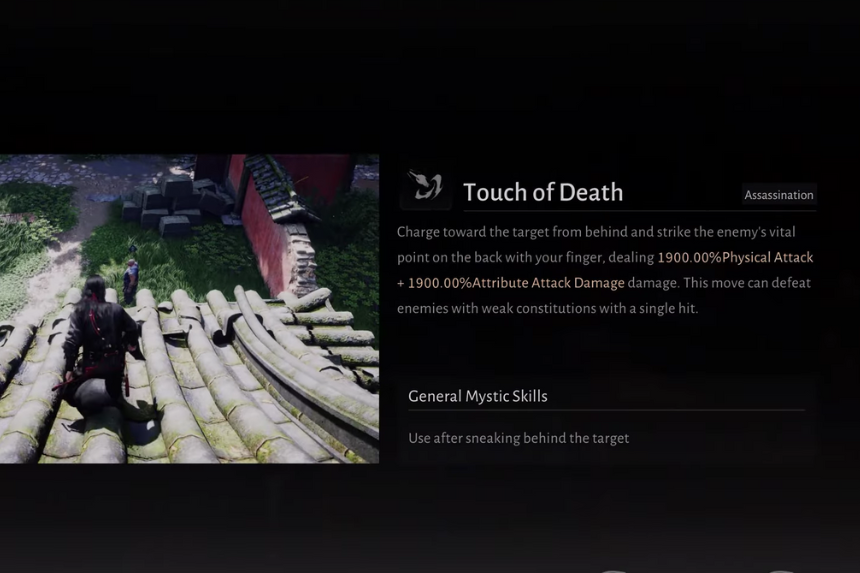 Touch of Death is a General Passive Mystic Art in Where Winds Meet. It lets you rush up behind an enemy and jab a pressure point on their back, hitting their vital spot for a burst of damage. If the enemy is frail or low-constitution, this move can instantly take them out in one hit. Just keep in mind that Touch of Death can’t be upgraded; it doesn’t gain Ranks or Tiers through the Breakthrough System.