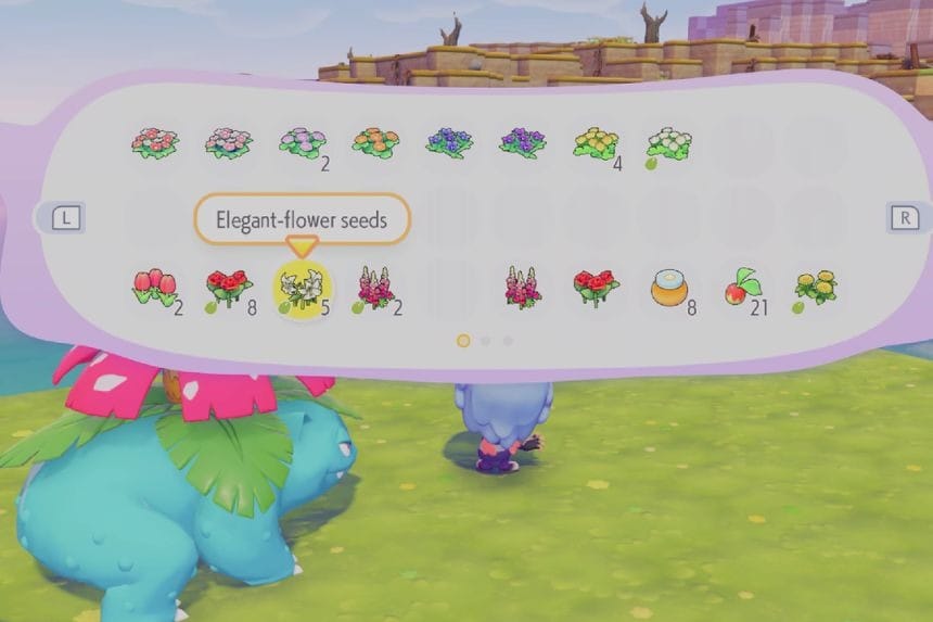 These flowers are difficult to find, but you can get them from the daily shop and random seed gifts from Pokémon walking around town. You can also use flower seeds instead of fully grown flowers. After planting all 12 flower types, open the PC and collect your challenge reward to get the Soda Float.