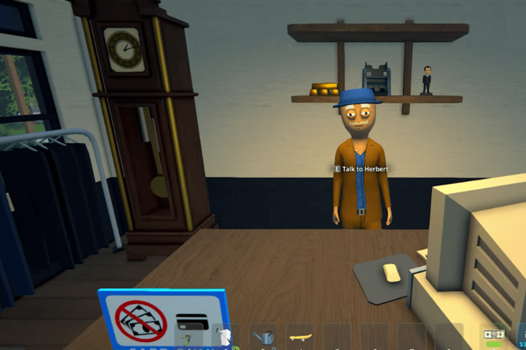 Inside, you’ll meet Herbert, who runs the place. You can chat with him to buy supplies or sell items, but only if you’ve unlocked the Uptown area. If you haven’t, his sample option will be grayed out, though you can still shop. Every now and then, you might also run into NPCs like Allison hanging out on the couch. If you’ve got Suburbia unlocked, she could even become one of your customers.