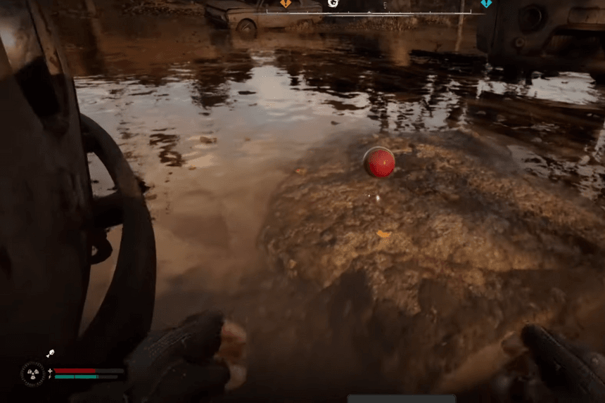Head southeast of Zalissya in Stalker 2. You’ll pass a big lake on your left. In the middle of this lake, there’s a strange, pulsating bubble. It’s dangerous, so save your game before getting too close. This bubble keeps growing and shrinking, and when it grows, it sucks things in from the lake’s edge. When it shrinks, it spits them back out.