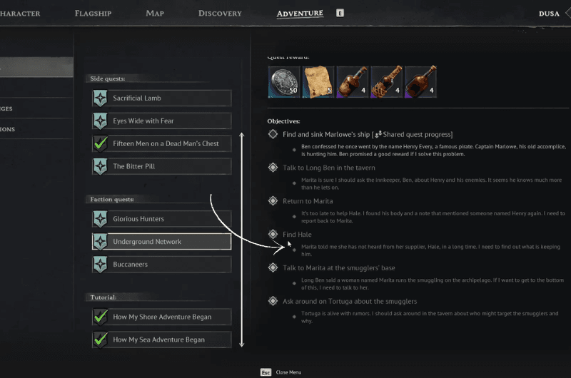 It all starts with the Underground Network questline. When you reach Tortuga and inquire about the smugglers, you’ll be processed to a new location of a cave where you’ll find the Smugglers of Port Royale. And in the smugglers base, you’ll find Marita – who happens to ask you for a favor of finding her supplier Hale, who she hasn’t heard from in a long time. So, you’re sent to find out what happened to Hale.