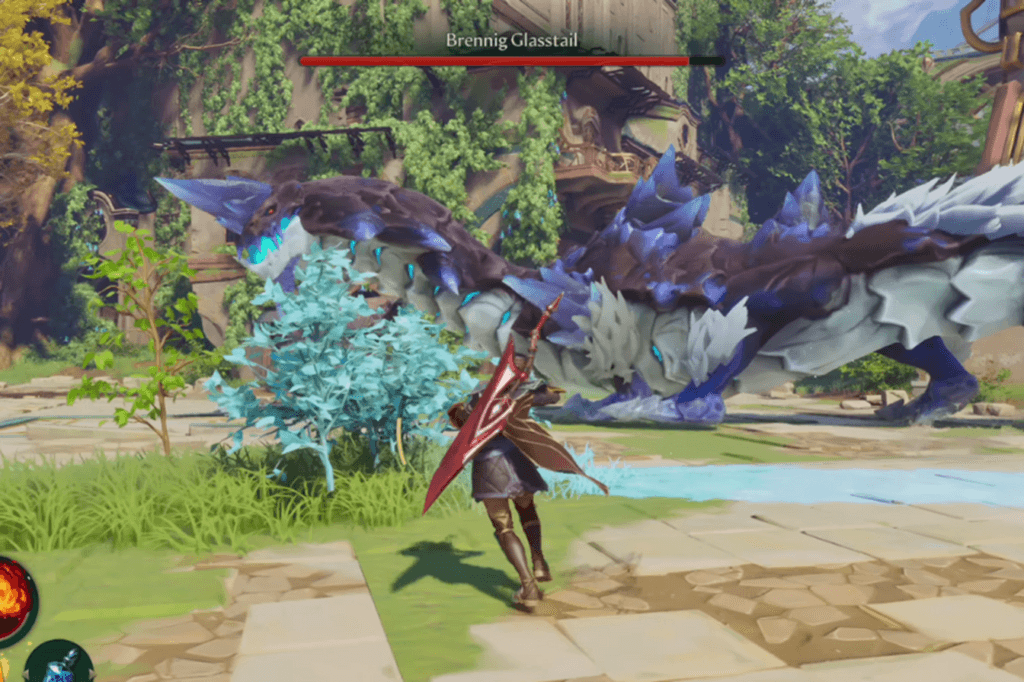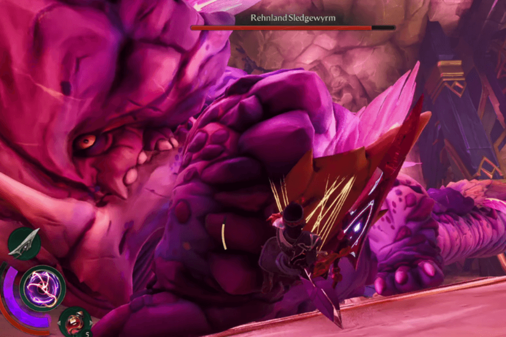 Rehnland Sledgewyrm has the most straightforward harvesting process in Eternal Strands. To reveal its locus point, you simply need to destroy its glowing frills when it charges up for an attack.