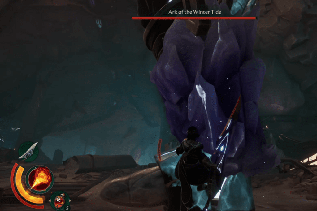 Ark of the Winter Tide is heavily covered in ice armor, and destroying it in the correct order is the key to revealing its locus point. Be quick, as the ice regenerates, especially on its hands.