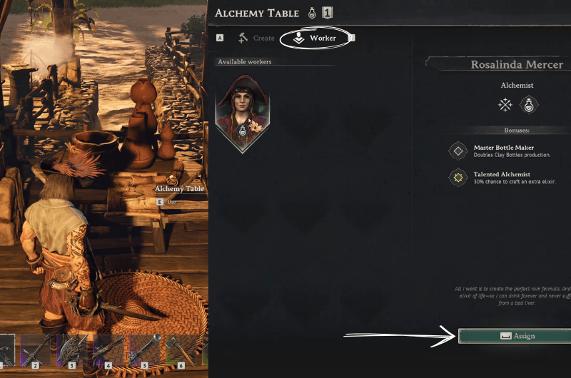 Since Rosalinda is an alchemist, you can assign her at the Alchemy Table under the workers tab on the alchemy menu as shown in the above image, you just need to click assign.