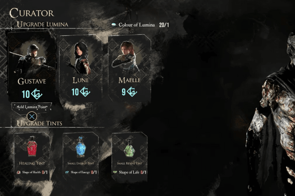To use your Colour of Lumina, talk to The Curator and choose the “Upgrade Expedition Resources” option. Then pick the party member you want to give more Lumina Points to. Each Colour of Lumina gives you one Lumina Point, so it’s a good idea to plan ahead and decide who needs the extra slots most so you don’t end up wasting these valuable items.