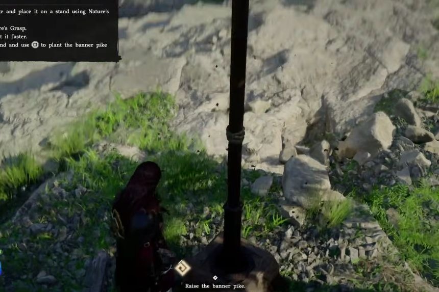 In order to do this, you can use a special skill on the banner. Once you have picked up the banner, you can focus on the banner stand. If you do not get the prompt, you can move closer to the banner stand. Once you have planted the banner, you can complete the quest. If the banner falls away or breaks for some reason, you can simply leave the area and come back again to reset the quest.