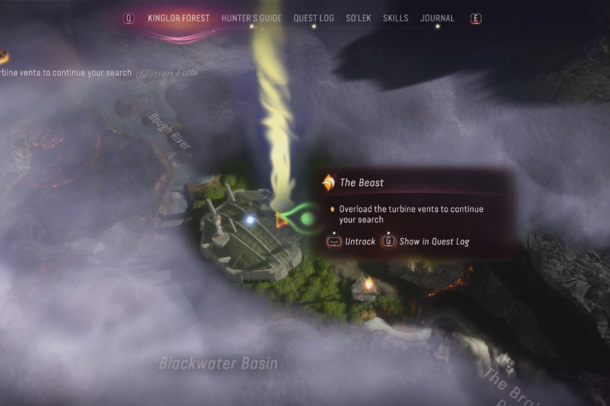 In the From the Ashes DLC in Avatar Frontiers of Pandora, one of the tasks you’ll be assigned with is overloading the turbine vents to continue your search further during The Beast campaign. You’ll need to start from the Blackwater Basin that’s located near the Kinglor Forest. Start by heading to the safehouse whose location is shown in the map image above.