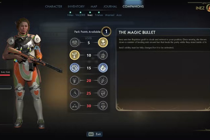 Initially, Inez will not have her companion ability unlocked. To achieve this, you will need to finish her companion quest, which is to assist her in fixing her cybernetic arm. The quest’s result transforms her ability: