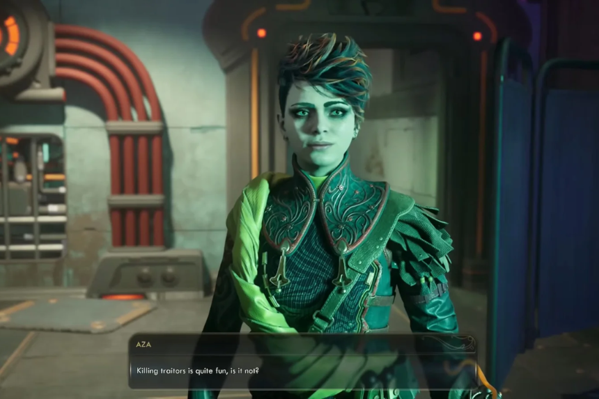 While traveling through Dorado toward the N-Ray Range, you’ll pass by a location called the Decommissioned Autonomous Extractorium, which is overrun by cultists. Clear the area, and you’ll discover Aza locked inside one of the rooms. Free her, and she’ll immediately offer to join your party.