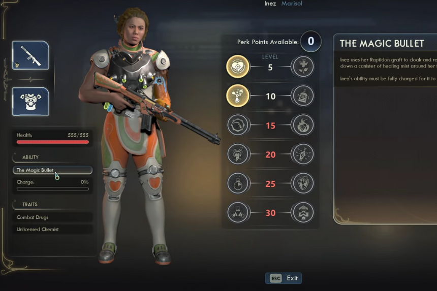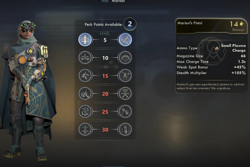 Marisol’s ability, Torpifying Blast, lets her shoot a target with a stunning round that freezes them in place while they’re stunned, every attack against them counts as a critical hit. Her Gadget Optimization trait gives your whole party a small energy restore every time you score a kill, and her Threat Analyzer lets you see an enemy’s health, armor, and weapon details when you use the N-Ray Scanner or Tactical Time Dilation. To get Marisol’s Upgrade Kits, complete her companion quests: Midpoint to the Endpoint and Endpoint’s End.