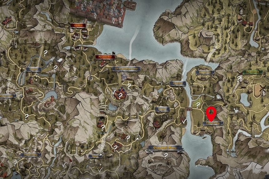 From the tavern, go towards the main road and turn left. Follow the road till you reach a bridge. Cross it and then turn left again. Keep going straight and you will reach the camp. At the camp, look for an NPC named Cyril. He may be sitting near the bonfire.