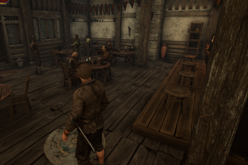 To join the Order of Seven, you need to find the missing knights. One of the knights is Beltran. Beltran is present inside a Tavern. To reach the tavern, go towards the big statue. From the statue take left and follow the main road till you see a large building on your left. This is the tavern. Go inside and you will find Beltran sitting at a table. Talk to him and complete all his dialogues options. Beltran will tell you that his sword was stone. He will ask you to bring it back for him.