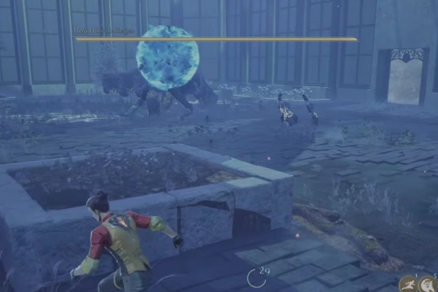 After some time, Holly will teleport to the centre of the arena. She will cry out loud, and it will start a big area of effect attack that can continuously deal damage. To avoid it, stand on the flower beds around the arena, and the attacks will not hit you.