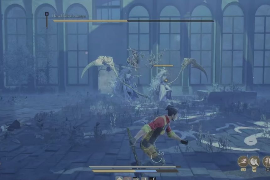 In phase ll, Holly will use her scythe and deal close-range attacks. Parry her attacks, which will give you an opening to counter and deal damage. She will also shoot out a straight line of toxic venom on the ground. To avoid it, stay right in front of Holly when she starts attacking. You won’t be hit by the venom, and you will get an opening to attack her.