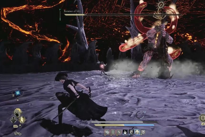 Idris the Retainer is very slow, so you need to have good mobility so that you can easily dodge its charged attacks. The safest place is behind the boss’s legs. Attacking the legs will disable it, giving you an opening to deal damage. After some time, the boss will create a distance between you, so run towards it again to hit his legs. His yellow tentacles are his weakness, so attack them whenever possible.
