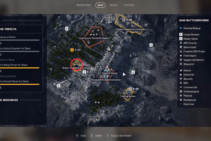 Head to the Water Treatment Control Building, situated between the Primary Facility and the South Swamp Outpost, just below the Hydroponic Dome Complex.