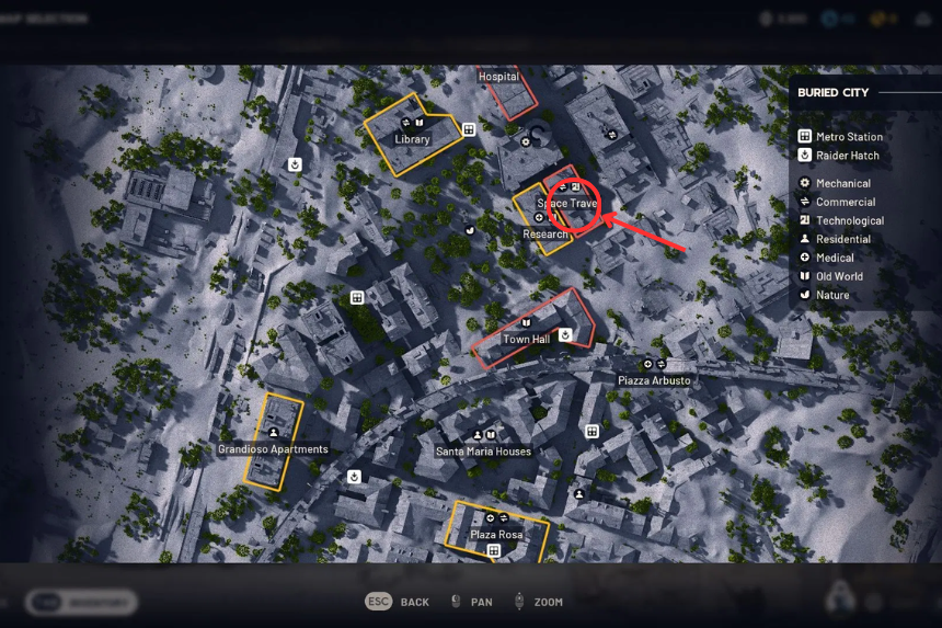 Proceed to the Space Travel Building, which is situated in Buried City. The structure is near Marano Park, precisely between the Town Hall and the Library, and just next to the Research Building. Fight your way up until you reach floor six, where there’s a room with a barricade. After taking out any ARC enemies in the way, interact with the barricade to complete the final objective.