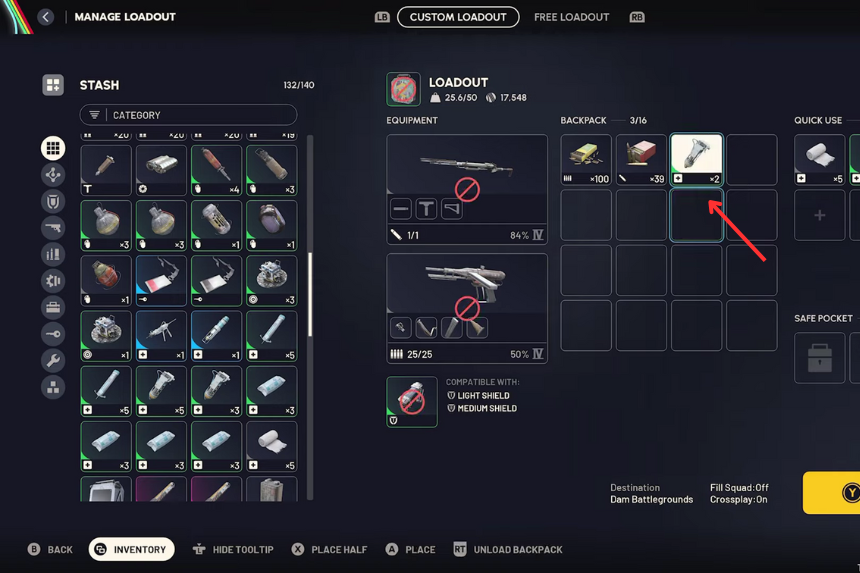 • Sort by priority: Keep ammo, med kits, and grenades on the first inventory page for fast access in combat.