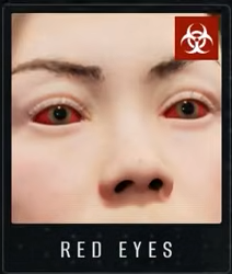 | Red Eyes | Crimson glowing pupils. Advanced infection. | INFECTED |