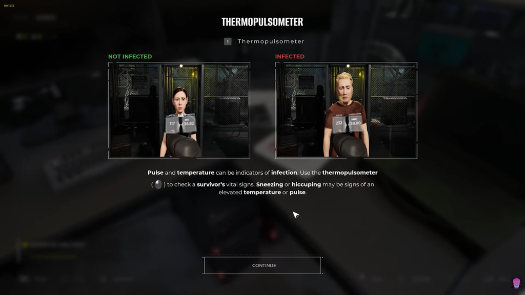 - Eye Indicators: Survivors with yellow eyes are safe and can be let in. If they have Conjunctivitis, you should put them in Quarantine, and if you see any survivors with Red eyes or eye pus,s then they are infected, and you should deal with them swiftly.
