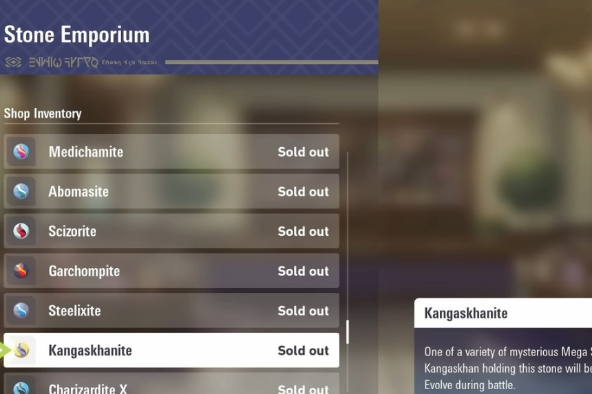 The second major vendor, Quasartico Inc., deals in Mega Stones sold for Mega Shards instead of cash. You can collect these shards by breaking pink crystal clusters found across the map. Prices vary between 180 to 360 shards, depending on the Pokémon.