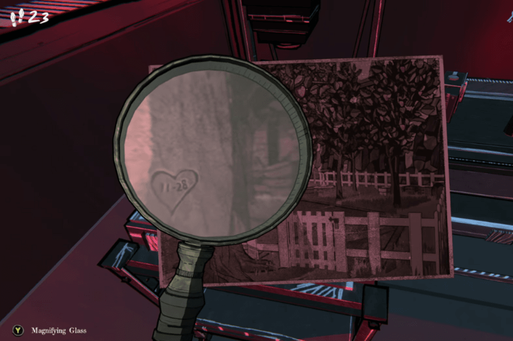 Now, go into the Dark Room and use the Magnifying Glass on the Orchard photo. Look closely you’ll spot a date carved into the tree in the foreground: 1128. That’s your four-digit code for unlocking the Orchard Gate. Opening the gate is a big deal it boosts your daily Steps by 20, which is a huge upgrade.