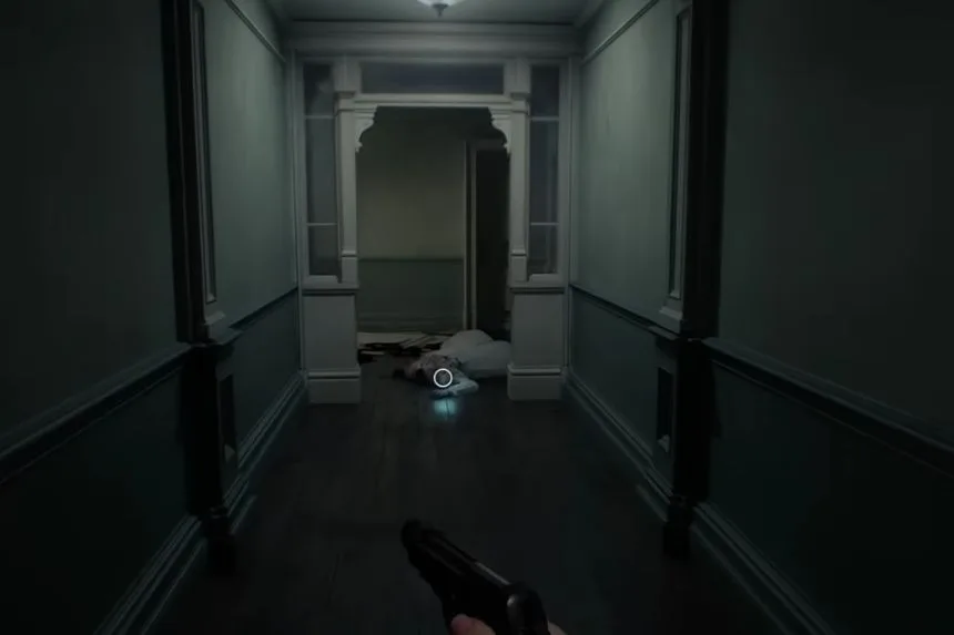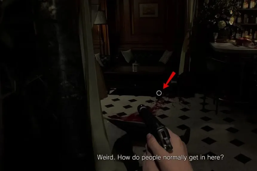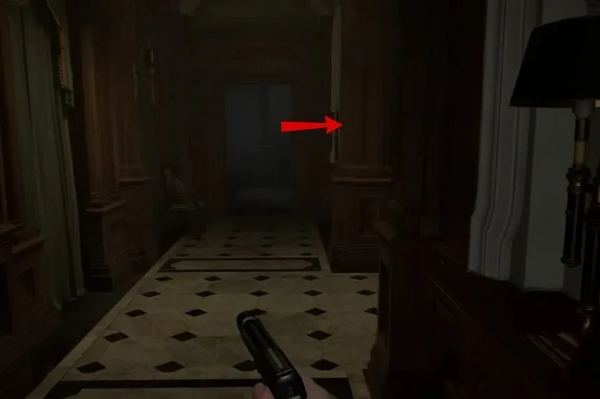 This opens the way to the Parlor. Go to the back of the room, interact with the statue’s arm and rotate it and you will get the East Wing Keycard. Now leave the Parlor and return to the Central Hall. With the East Wing Keycard, unlock the East Wing door. Then head north through the hallway and enter the lab area.