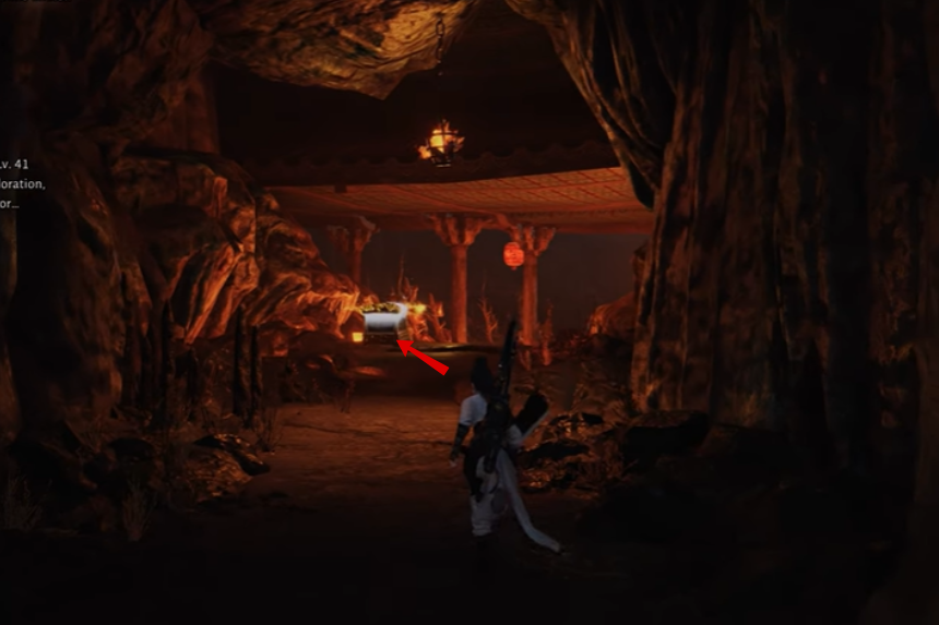 When you arrive, leave the first cave you spawn in, then turn around and climb up to the hidden cave above the entrance. Walk a short distance inside, and you will find a chest on the left side. That’s where the Wolflike Frenzy mystic skill is stored.
