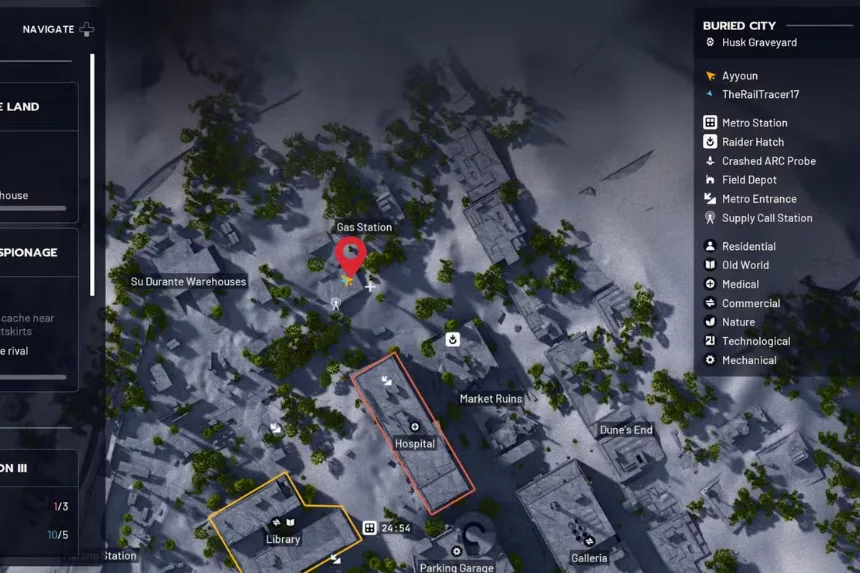 You’ll be heading to the Gas Station in Buried City. The quest zone is directly south of the Gas Station marker, between the Hospital and the Su Durante Warehouses, hotspots where PvP clashes never cease.