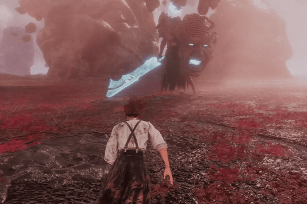 A Chromatic Boucheclier will confront you after you cross the bridge. In addition to two Grandiose Chroma Catalysts and five Colours of Lumina, defeat it to obtain Maelle’s Facesum weapon.