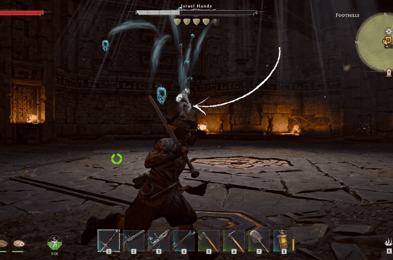 Hands will shoot spectral projectiles aimed towards you, you can dodge them just by sprinting away from them but there’s a chance for you to get hit by 1 or 2 projectiles.