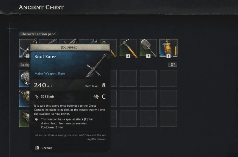 After you’ve defeated Hands, you can claim the Soul Eater sword from the ancient chest in the boss arena. This is a great sword considering its damage output and its an item level 8.