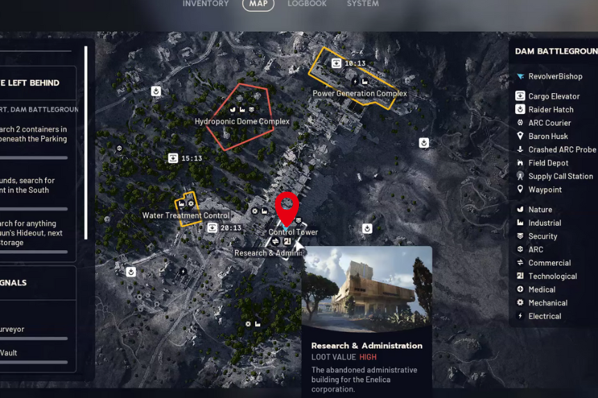 Get to the Dam map, head into the Research & Administrator’s Building, and make your way into the Medical Room. Follow hallways and signs if you get turned around. When inside the med room, just loot any two containers inside. That’s all you need for this part.