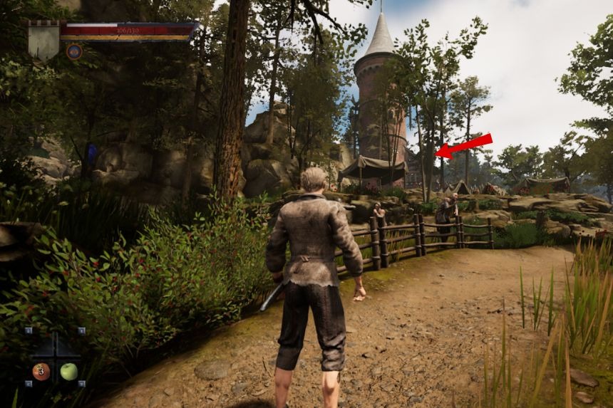 Follow the main road till you see a bug statue. Keep going straight from there and then take a left turn from the signpost till you reach the Forest Tavern. This is where you will find Melt, who is drinking near the tables. Talk to him, and he will tell you that he is in a big debt. Pay his debt to the Tavern owner, and if he asks for more money, choose the persuasion option in the dialogue to not pay him. After paying Melt’s debt, he will join the Order of Knights.