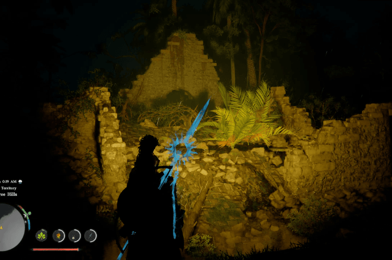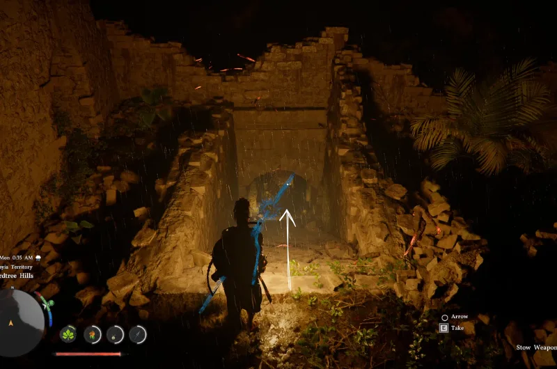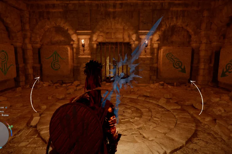 Identify the ruins shown in the above picture and there is an entrance in the ruins that leads to the underground where the puzzle is located. The entrance however, is blocked by roots.