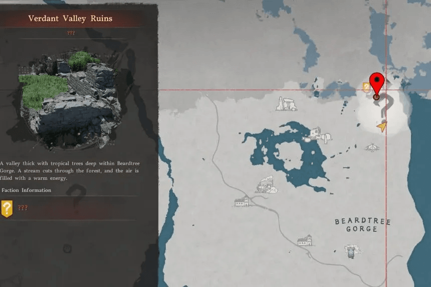 The Memory-Laden Ruins are found on the northern side of Beardtree Hills. To go there, just travel in the northern direction from Beardtree Gorge and then go east of Swamp Ruins. Just when you are near your destination, you will notice a “Mysterious Energy” symbol on your map, indicating the spot you have to reach in order to begin the quest.