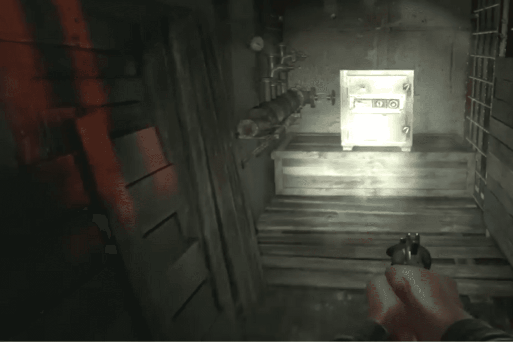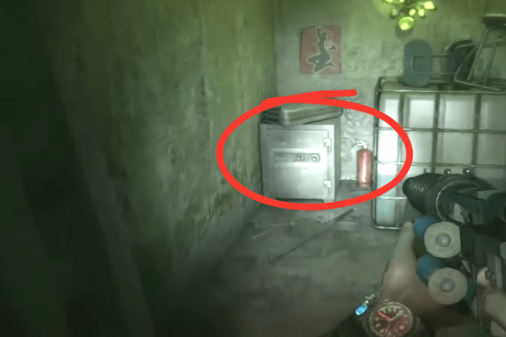 Once you’ve grabbed the key, head down the hallway to your right, take another right, then continue straight until you reach some metal gates. Just past them, the safe will be in a room on your left.