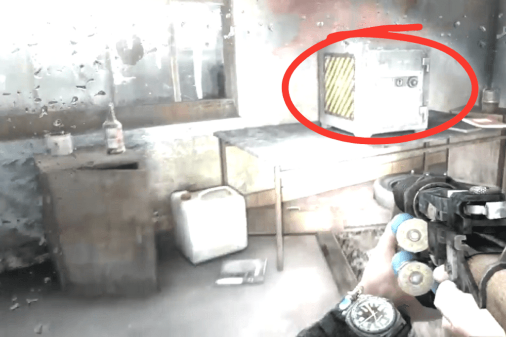 The safe is just a short walk from there, inside a building marked with a painted ranger helmet on the outside. Once you’re inside, head to the far left, the safe is located in the bathroom.