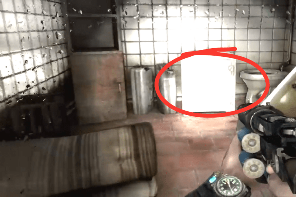 After you’re separated from your squad, head into the first room, then take a left followed by a right. Go into the bathroom on your left. The key is inside the urinal closest to the wall.