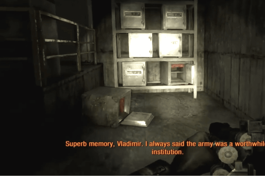 At the end of the level, after you dismount the machine gun and enter the side tunnel, you’ll reach a point where Pavle heads to the right. Instead, look to your left there’s a door there. Open it, and inside you’ll find both the key and the safe sitting together on a table.