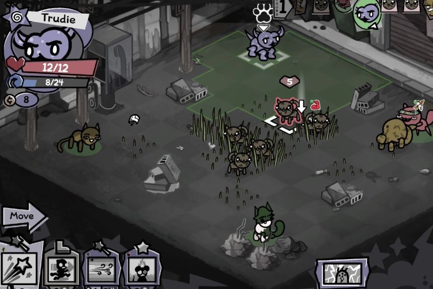 Maisie is a mini-boss that you will fight in The Alley. She looks like a Tank but she will not attack you directly. Instead, she will bring five kittens who will fight with you. Maisie’s main trick is supporting her kittens. Whenever you use an ability on her kittens, she will teleport to that kitten, and the kitten will go to the place where Maisie was earlier. On her turn, she will move next to her kittens and then licks them, which gives the kitten +1 damage.