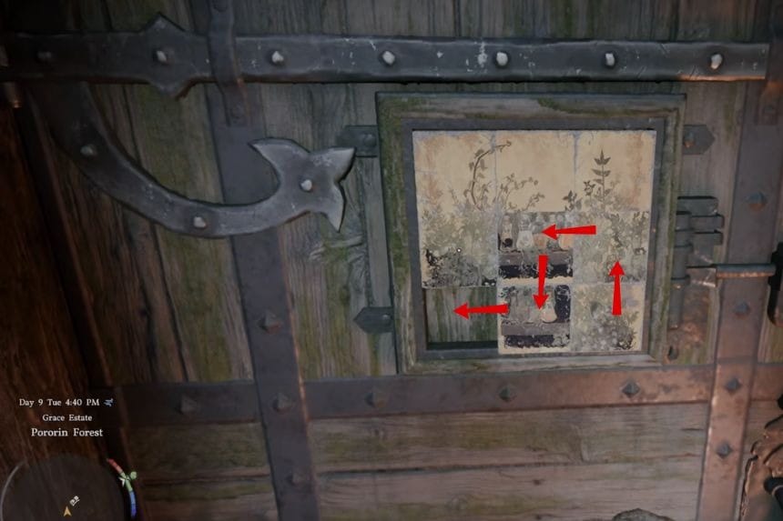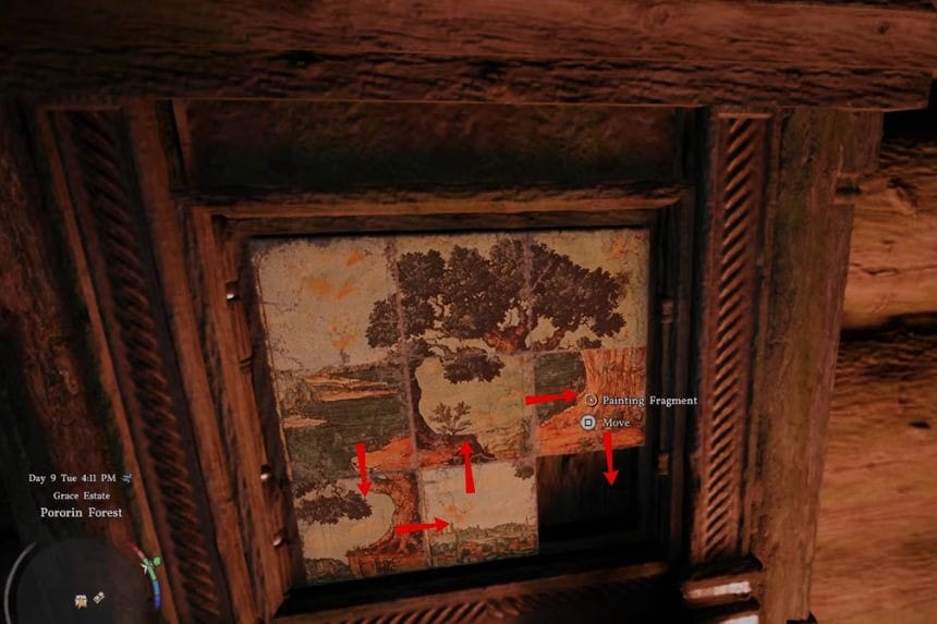 The first puzzle is inside the cabin. It works like a sliding puzzle with about six movable pieces, while the top row stays fixed and can’t be moved. Once you complete this puzzle, you will get a pair of earrings as your reward.