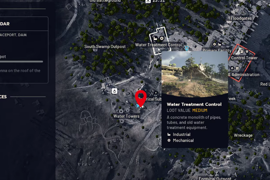 First, you’ll need to locate a Field Depot. These tend to be found near the Water Towers Electrical Substation area or near the hydroponic complex, so go that way. When you see where you want to be, find a building with a large antenna on top that is your destination. Before you go to work, climb into the trailer nearby; there may be some good loot inside.